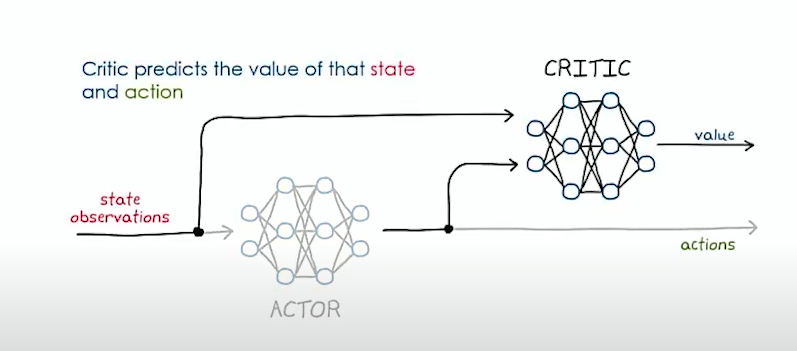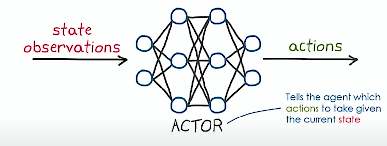One NN is Actor which takes in state and predict a probability of taking different actions.